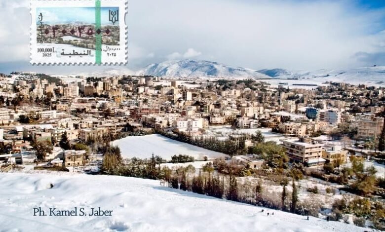 الصورة كناية عن مشهد عام للنبطيّة صورّه كامل جابر خلال الـ 31 من كانون الثاني (يناير) 2008، من ناحيتها الجنوبيّة الغربيّة، وتظهر خلفها تلال إقليم التفاح مكلّلة بالثلوج.