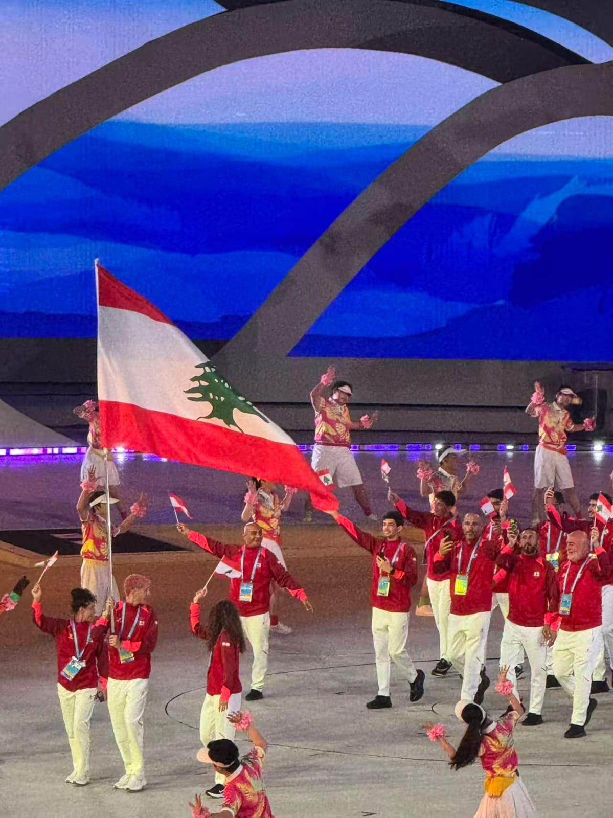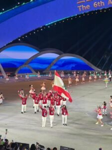 العرض العام لفرق البعثات الرياضية المشاركة والذين يمثلون 45 لجنة أولمبية وطنية وشاركت البعثة اللبنانية في هذا العرض حيث تقدمها رئيس البعثة عضو اللجنة الأولمبية اللبنانية المهندس روكز زغيب وحمل العلم اللبناني كل من اللاعبة قمر دندل ( التيك بول ) واللاعب جاد أبي كرم ( كرة الطائرة).