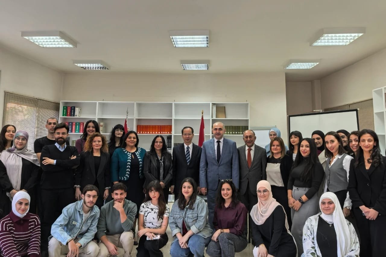 والتقى السفير الصيني مجموعةً من طلاب قسم اللغة الصينية وخريجيه، الذين شاركوا تجاربهم في تعلّم اللغة الصينية وعبّروا عن رغبتهم في مواصلة تطوير معرفتهم وصقل مهاراتهم بكل الوسائل المتاحة.