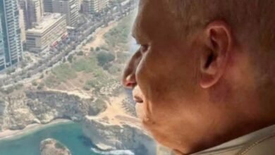 طائرة البابا لاوون الرابع عشر بجانب صخرة الروشة